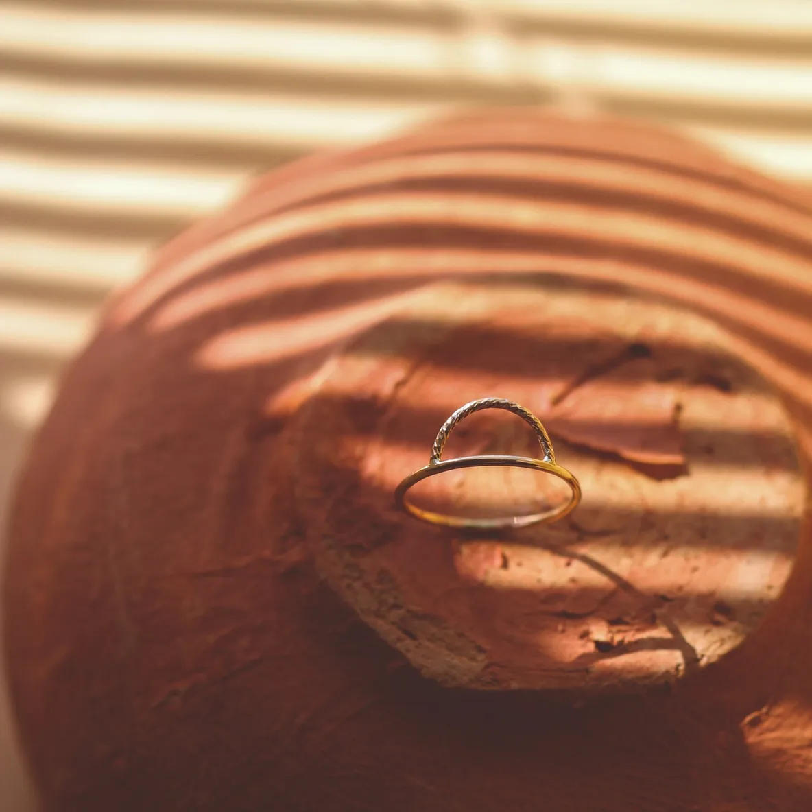 Meet lenora– meaning sun ray. Inspired by the sun, featuring a sparkly ray over a classic band. 14kt gold filled. Textured gold “ray”. Ring in one size 6/7 – This item is made using extreme heat and may show solder marks showing the item is handmade.