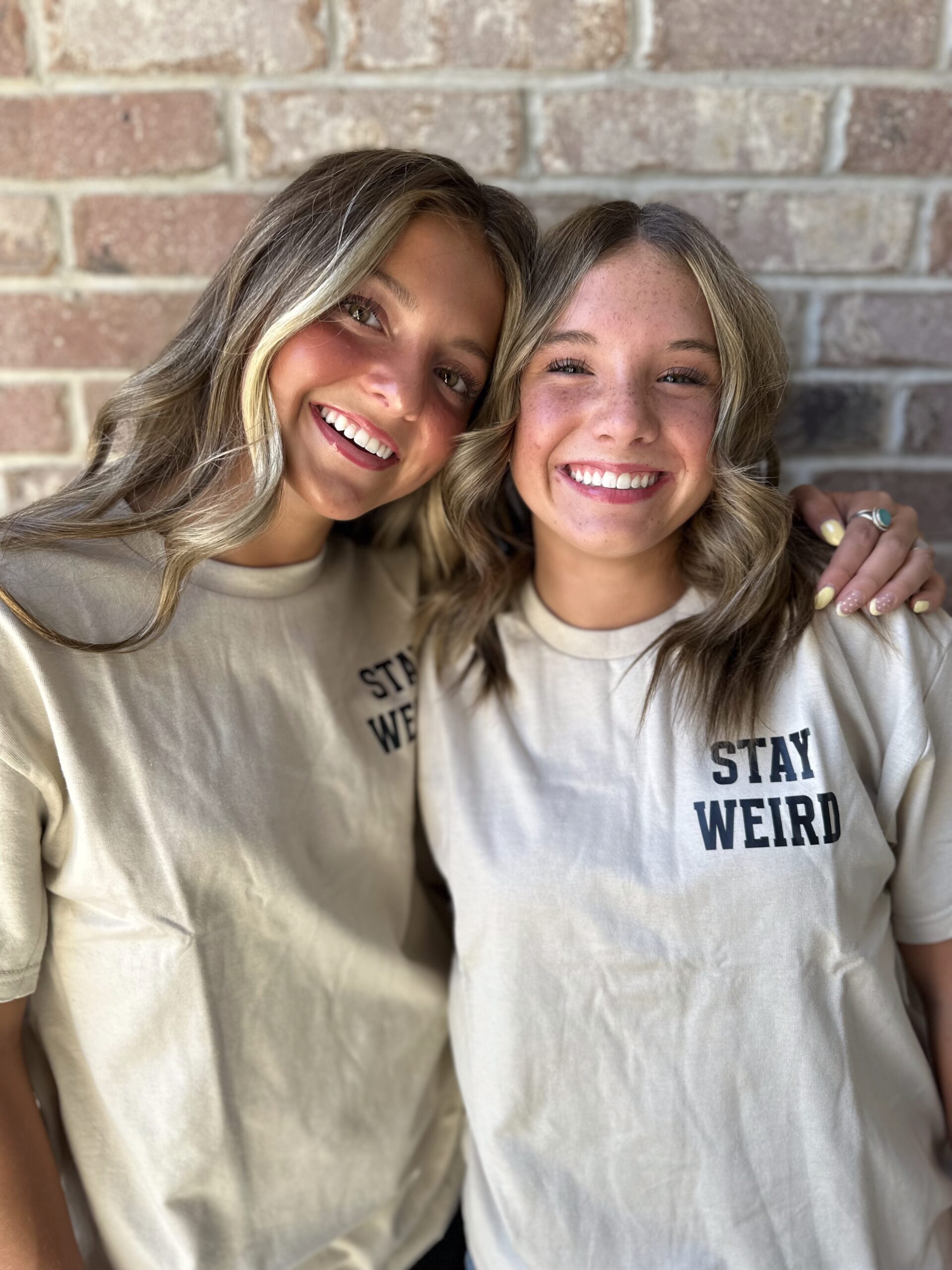 Signature Stay Weird Tee in our classic beige. Fit perfectly for a trip to the store, a Zoom call, or dropping off samples!